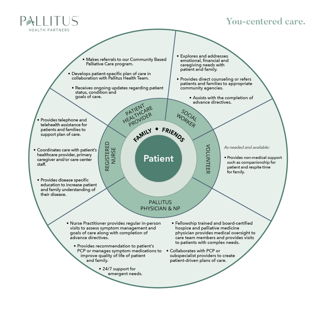 Learn the role of Pallitus Health team members as well as family and friends in the care of someone facing serious illness.